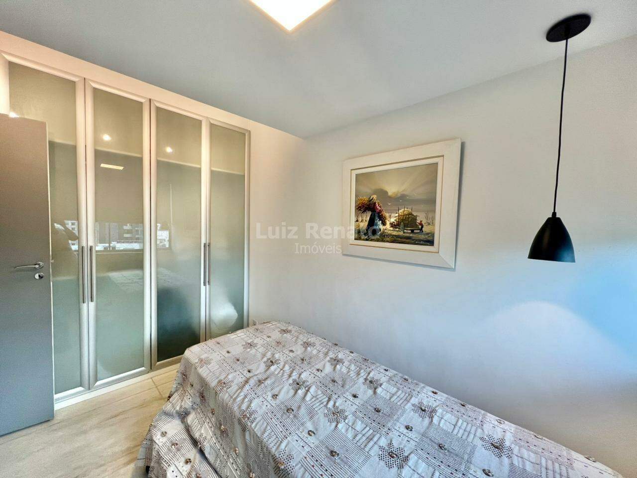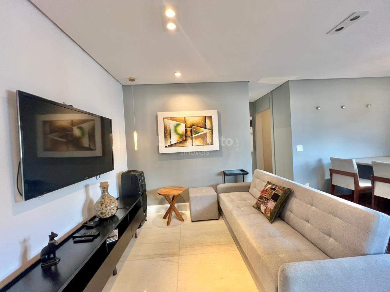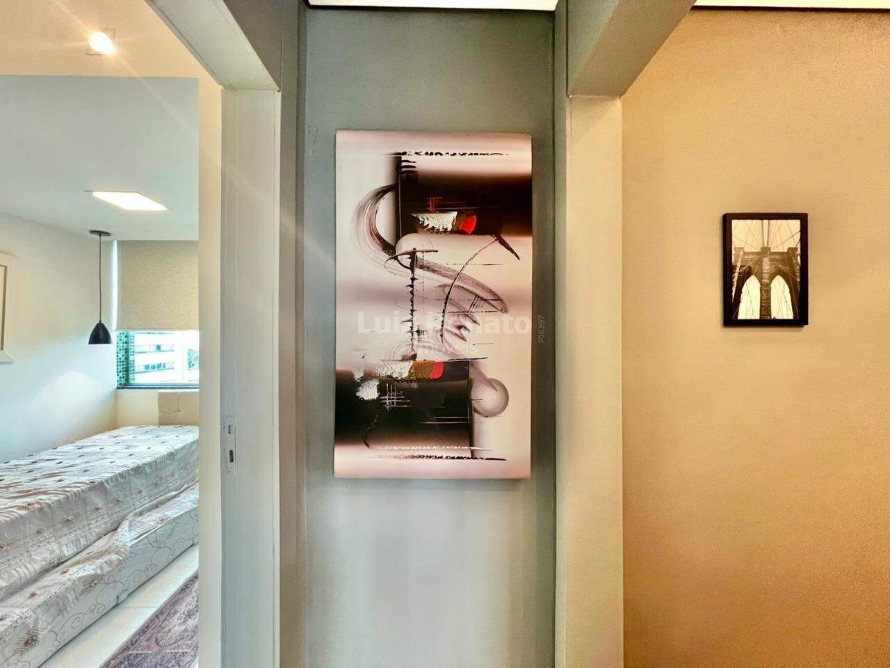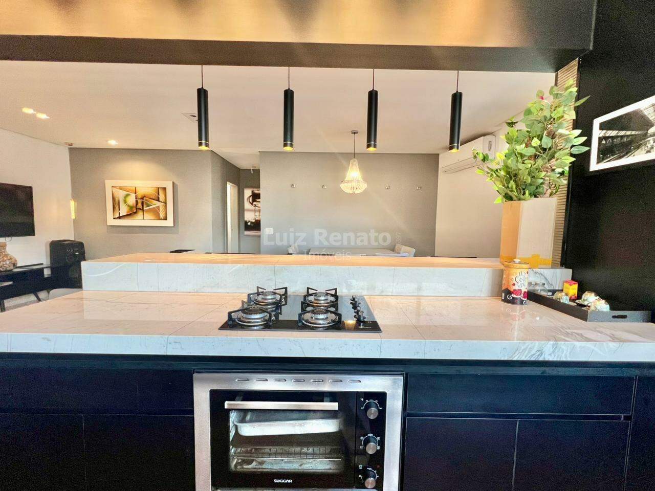 O apartamento possui fino acabamento, sendo todo mobiliado e decorado. Dispõe de sala ampla para dois ambientes, com piso em mármore, lavabo, cozinha americana com bancada em mármore, dois quartos com armários, ambos suítes.