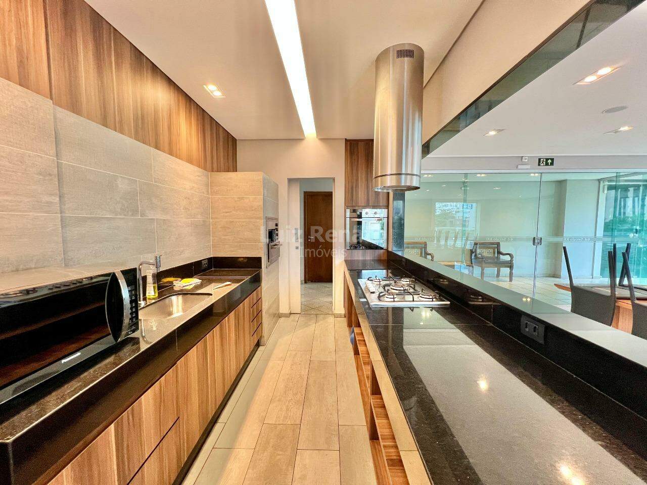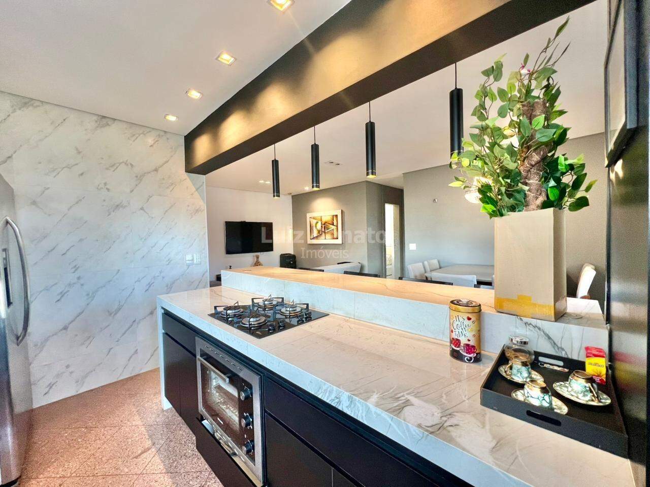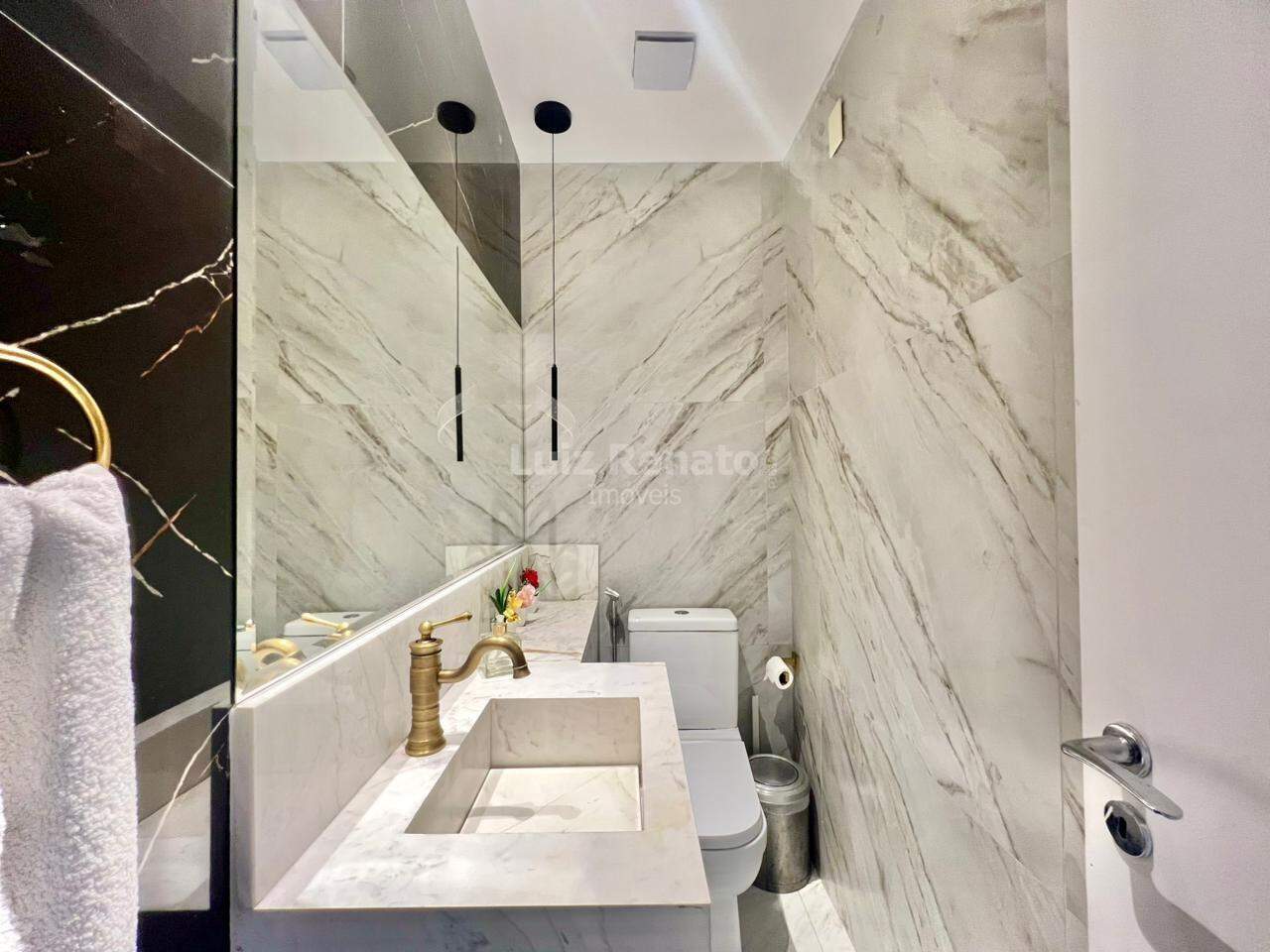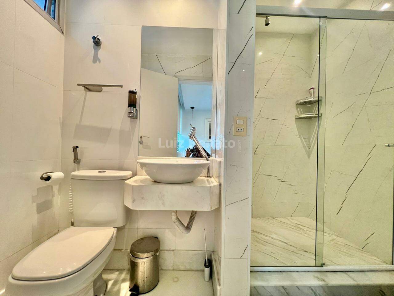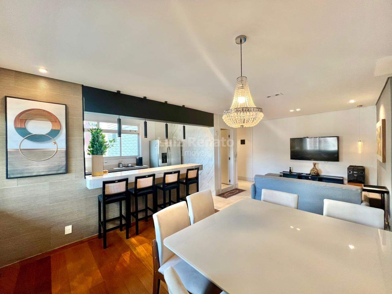 O apartamento possui fino acabamento, sendo todo mobiliado e decorado. Dispõe de sala ampla para dois ambientes, com piso em mármore, lavabo, cozinha americana com bancada em mármore, dois quartos com armários, ambos suítes.