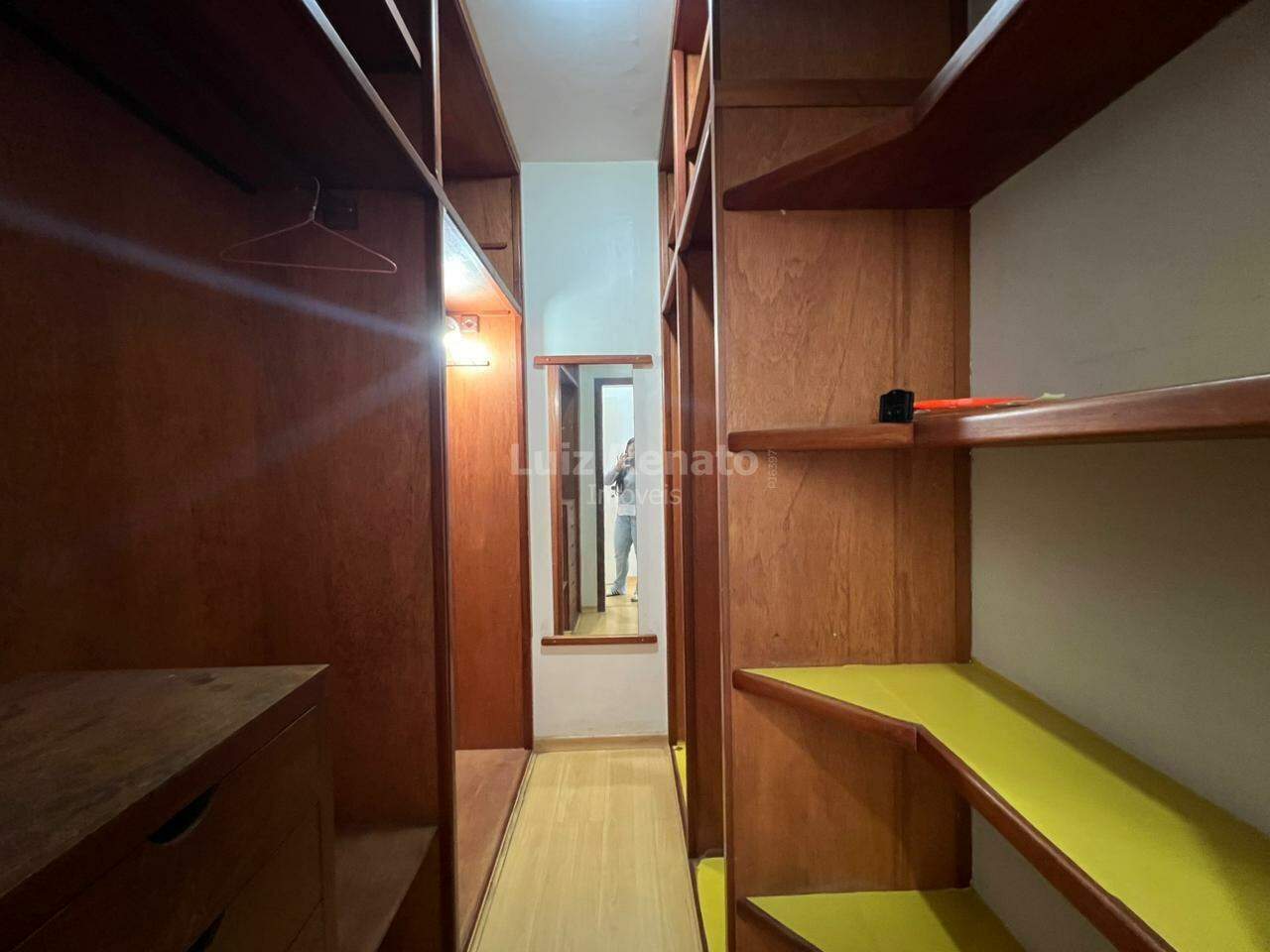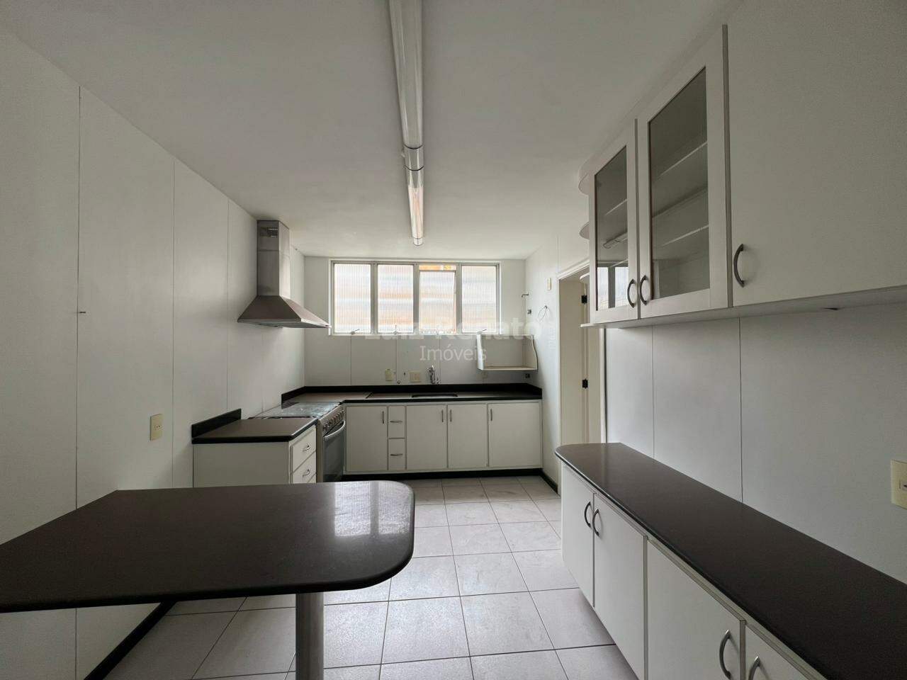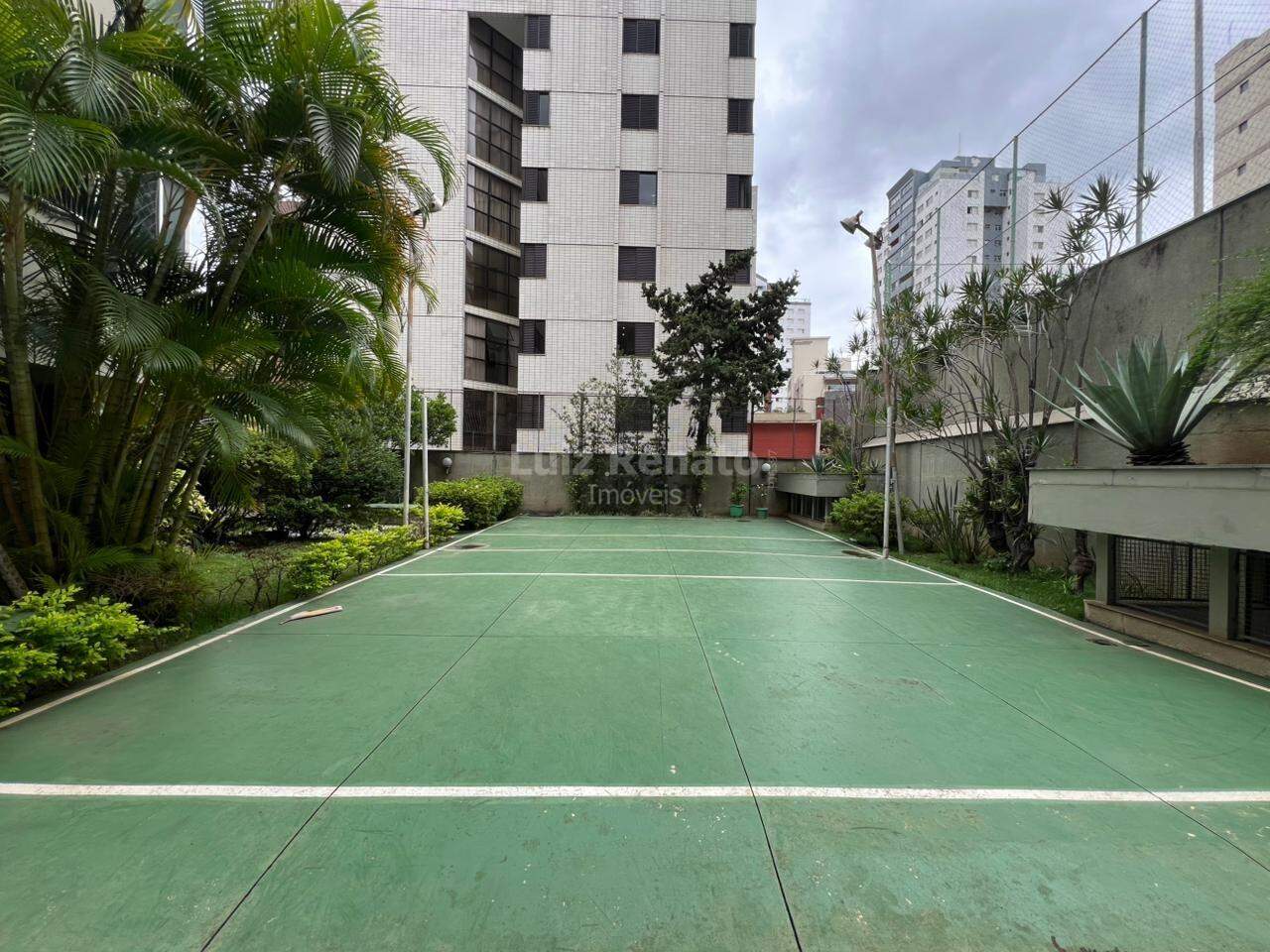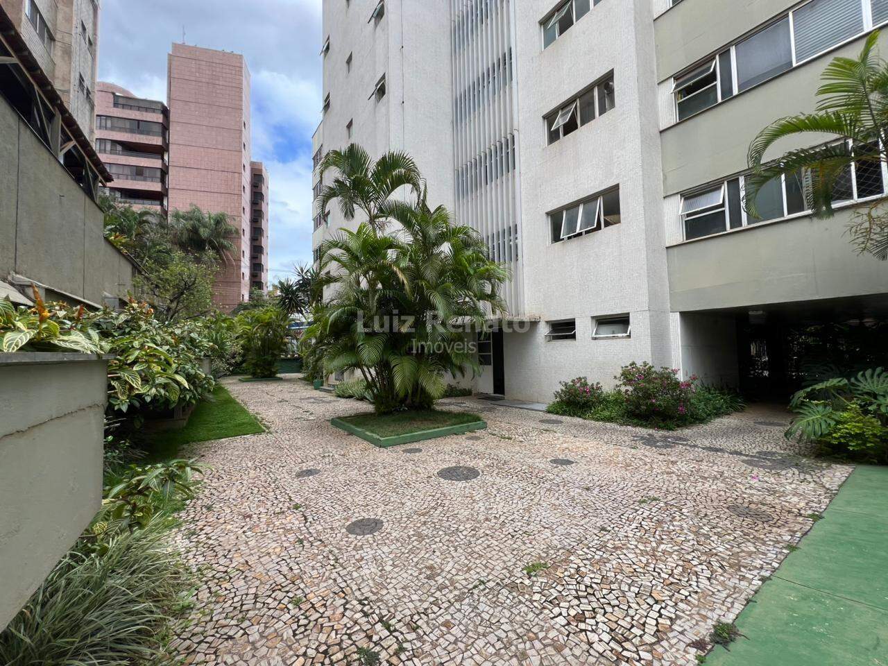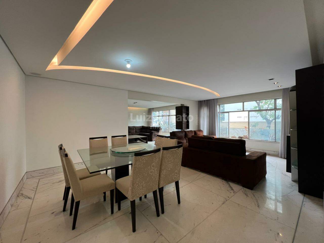 Apartamento para locação no bairro Serra, com 244 m² muito bem distribuídos. Possui sala ampla para três ambientes, com piso em mármore, lavabo, escritório e rouparia no corredor. São quatro quartos com armários e piso em laminado, sendo duas suítes. O banheiro social conta com bancadas, armários, box e espelhos.