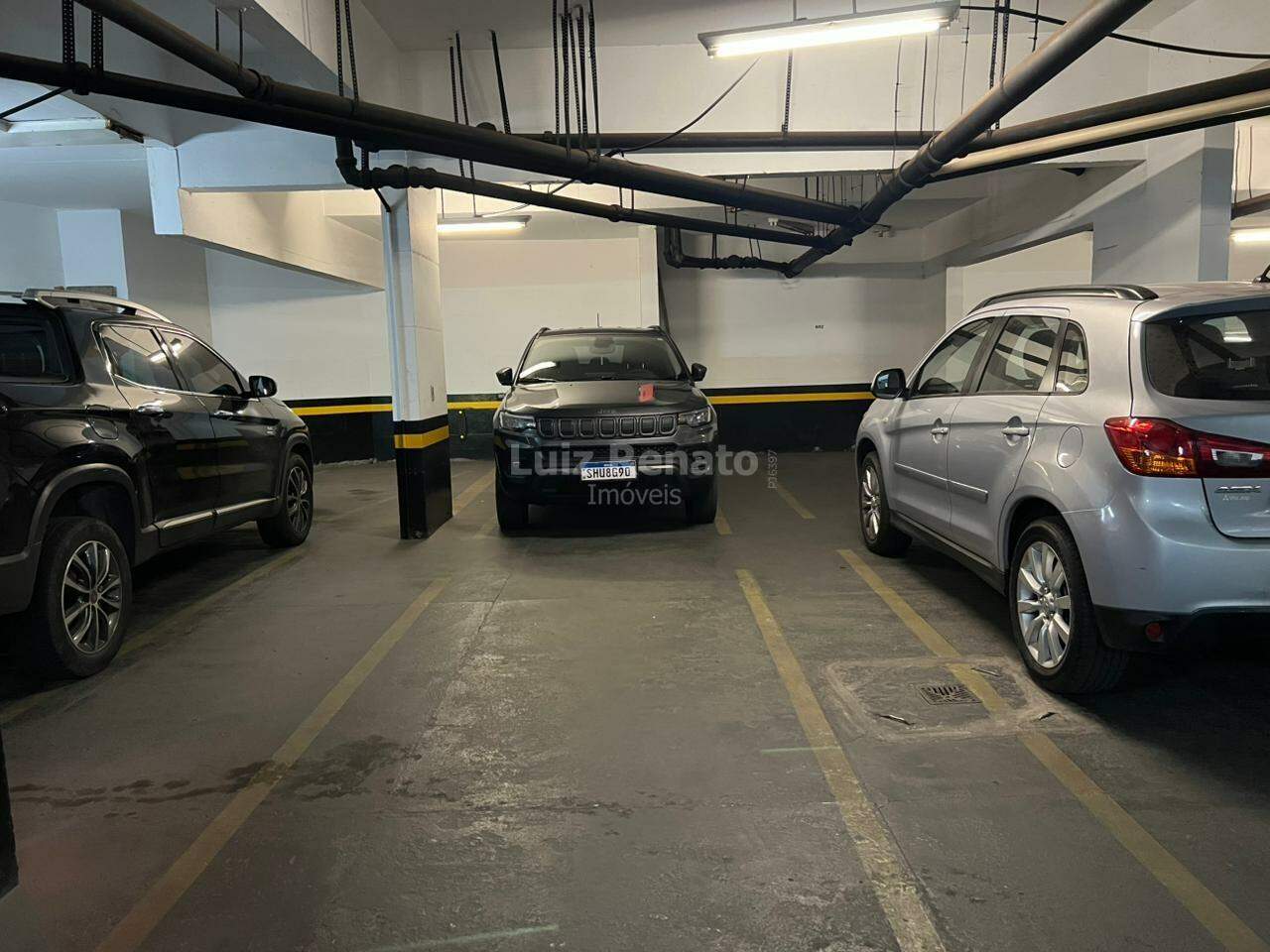 A cozinha é equipada com bancadas em granito e armários planejados. A área de serviço é funcional e dispõe de dependência completa de empregada (DCE). O imóvel oferece três vagas de garagem cobertas, sendo duas livres e uma presa, além de box de despejo.