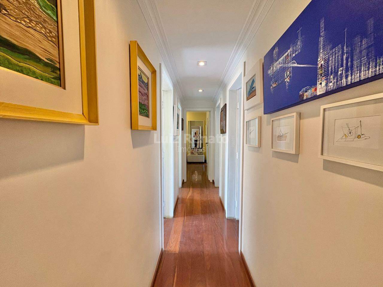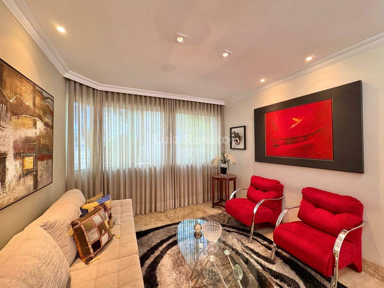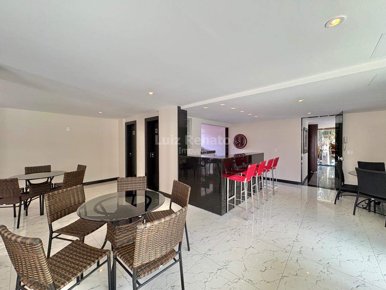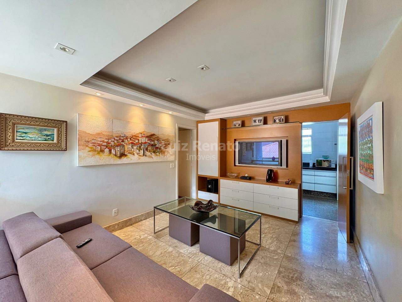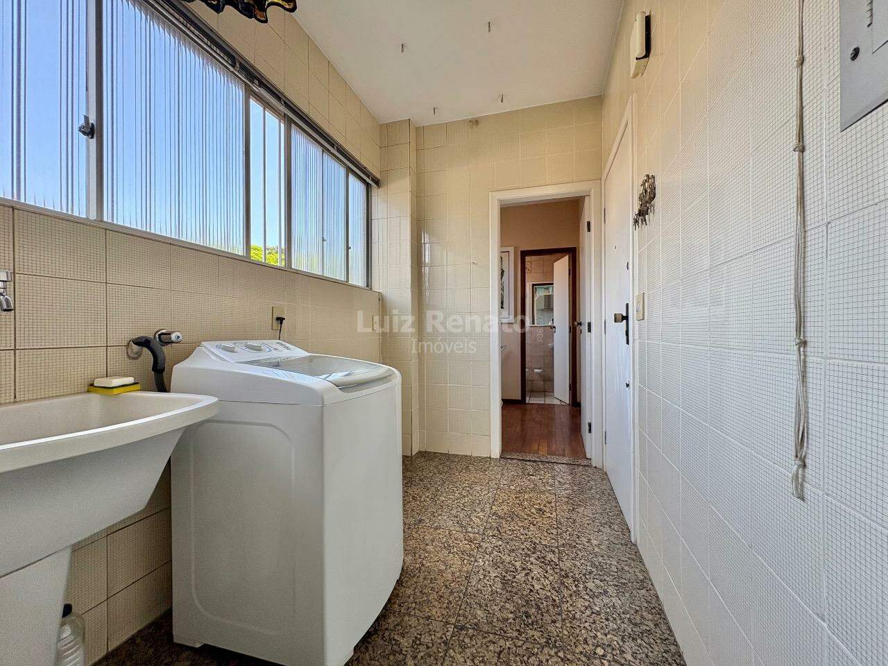 Apartamento: 140 m², sala ampla com piso em mármore, com varanda incorporada, 04 quartos com armários, sendo 1 suíte, banho social (com box, armários), rouparia, cozinha ampla com armários planejados, área de serviço e DCE.