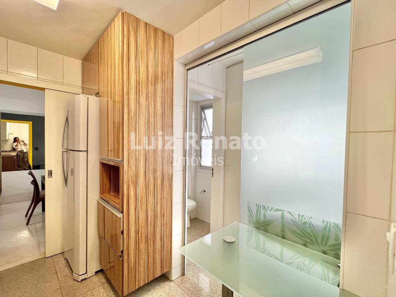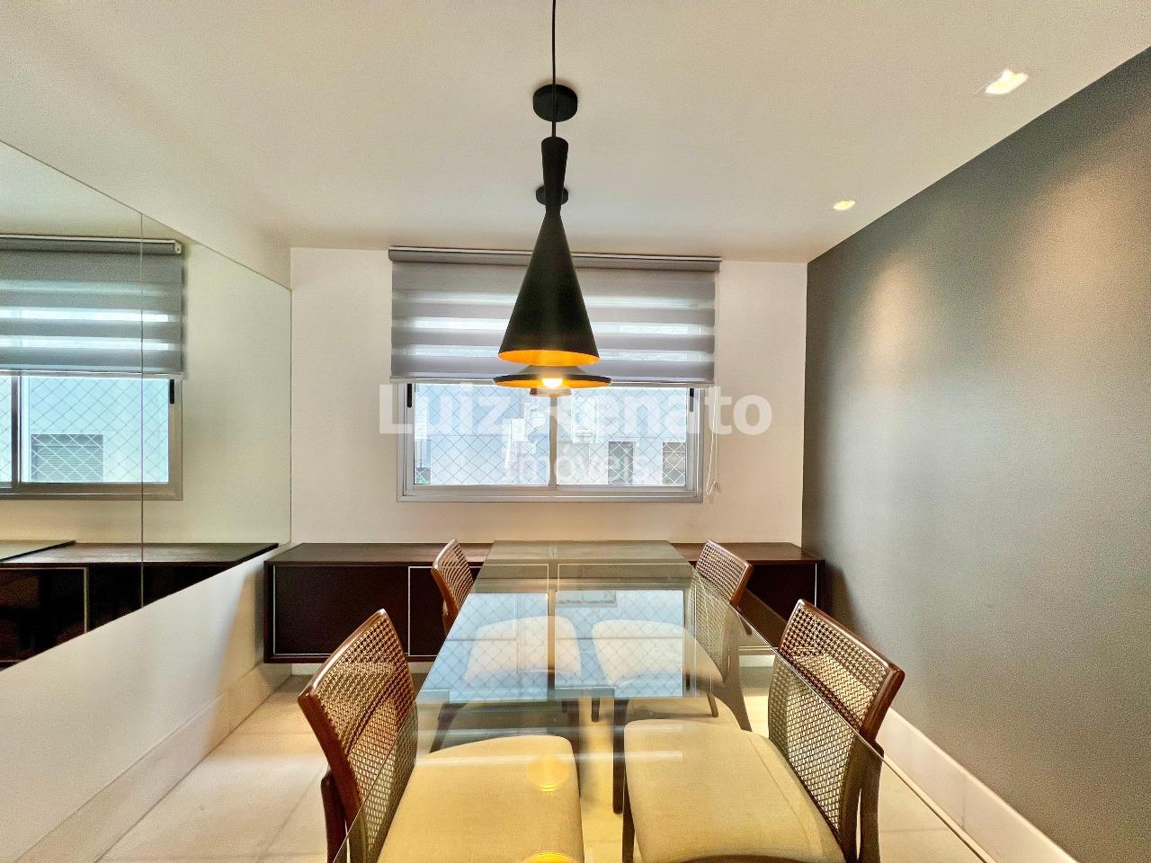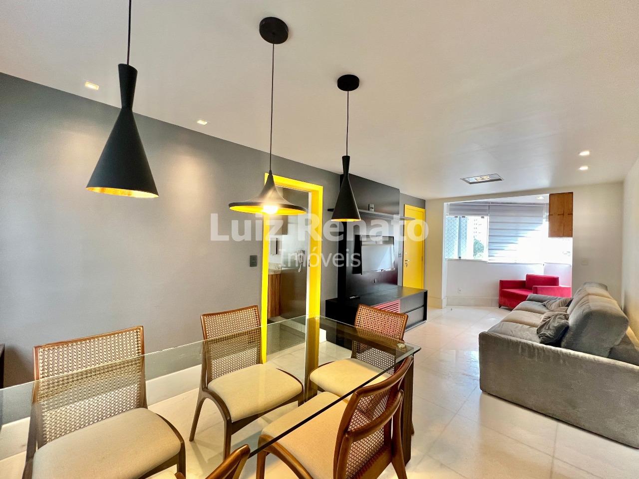 O apartamento é super claro e ventilado, com sala ampla para dois ambientes, todo montado e decorado. Possui três quartos com armários, sendo um deles suíte. O banho social conta com espelho e box em vidro. A cozinha é ampla, equipada com armários planejados, e a área de serviço dispõe de banho de serviço.