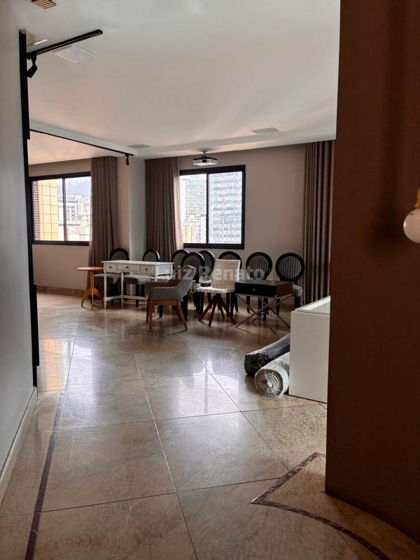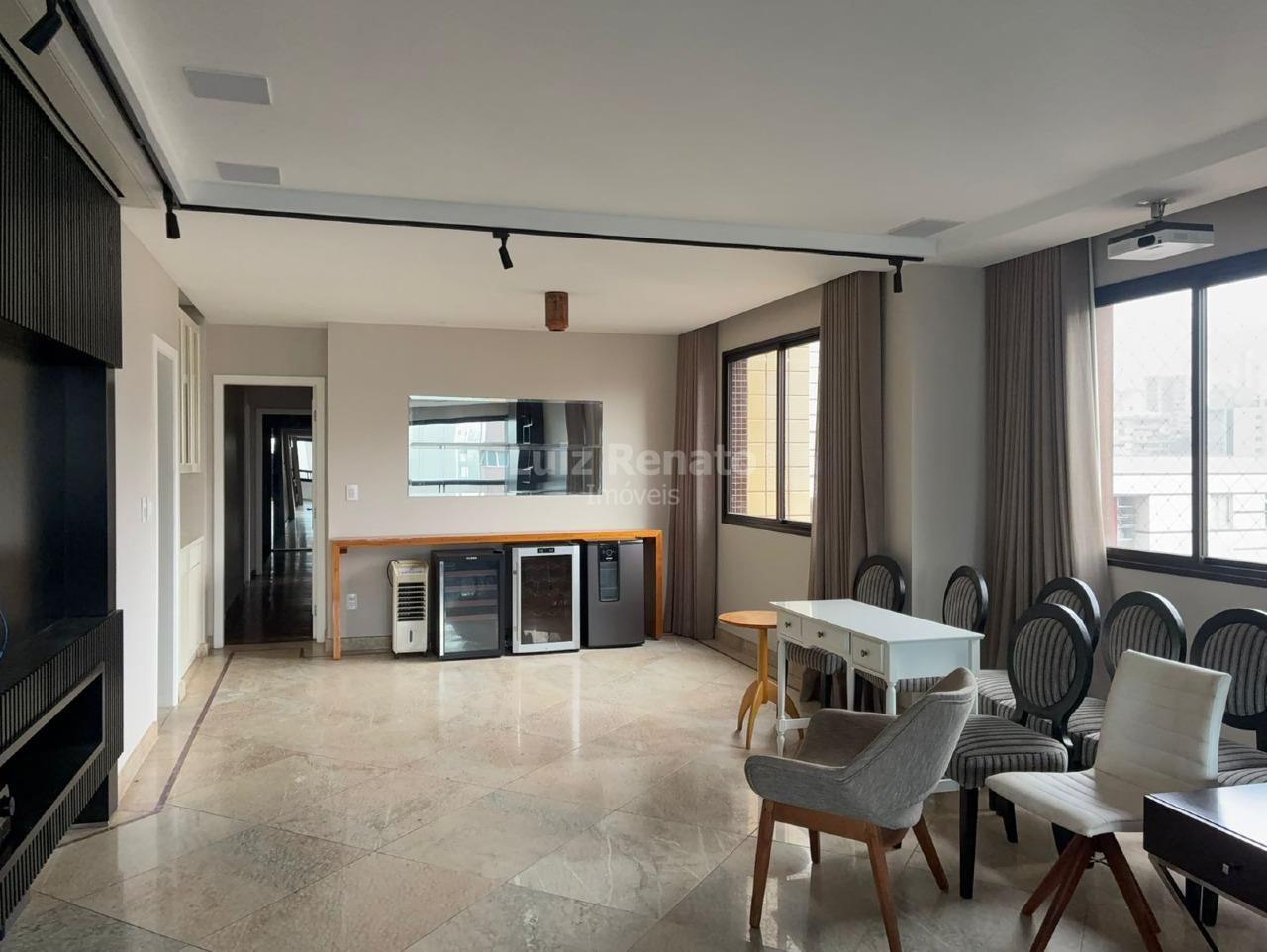 Apartamento com área de 210m², sala para 03 ambientes com piso em mármore e lavabo. São 4 quartos com armários, sendo 02 suítes e 1 semi-suíte, banheiros suítes com piso e bancadas em mármore, com armários e box. Cozinha montada com piso e bancada em granito, despensa, área de serviço, dependência completa de empregada (DCE).