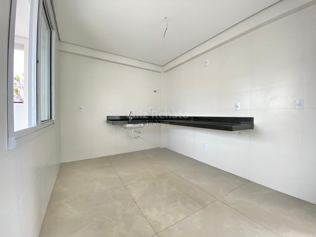 Cozinha com piso em porcelanato bancada em granito área de serviço.