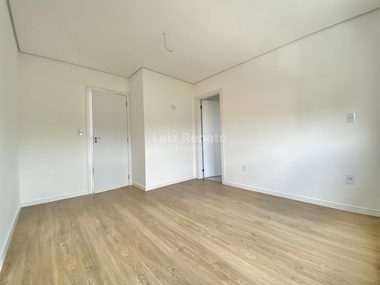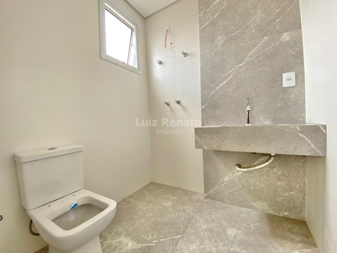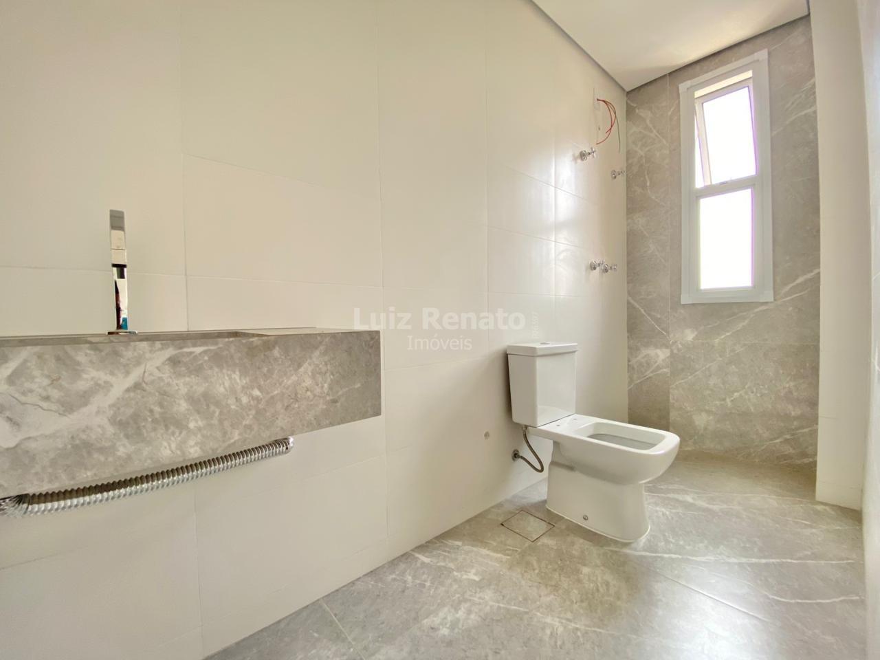 Segunda pavimento com três quartos com piso em vinílico sendo uma suíte suíte com piso em porcelanato bancada em mármore, banho social com piso em porcelanato bancada em mármore.