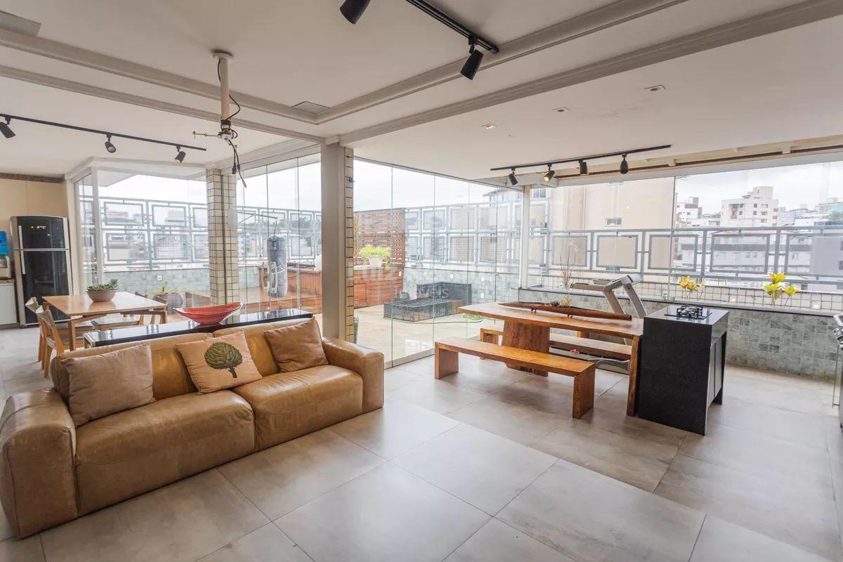 Espaços aberto e fechado com churrasqueira, ilha com cooktop, jacuzzi para até 6 pessoas, vista livre e ótima privacidade