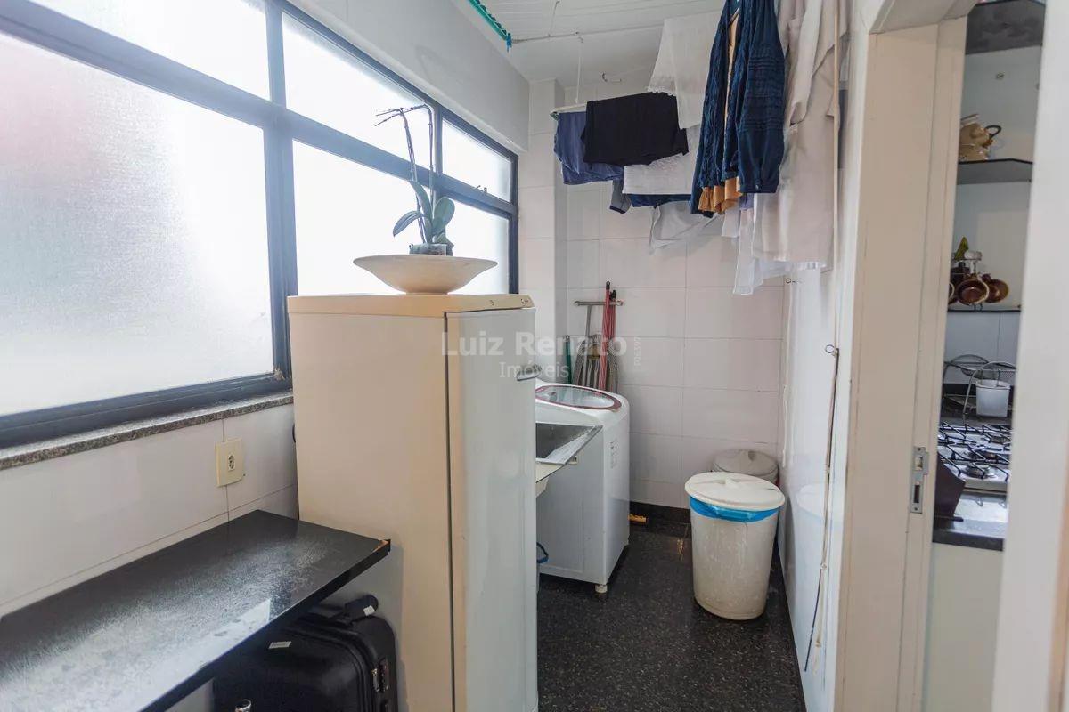 Cozinha, ampla sala e área de serviço.