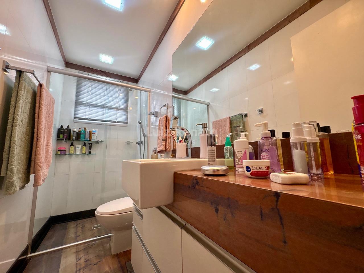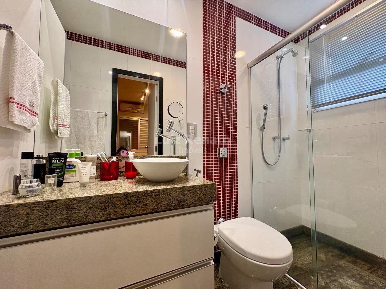 Banho social com box e armário;